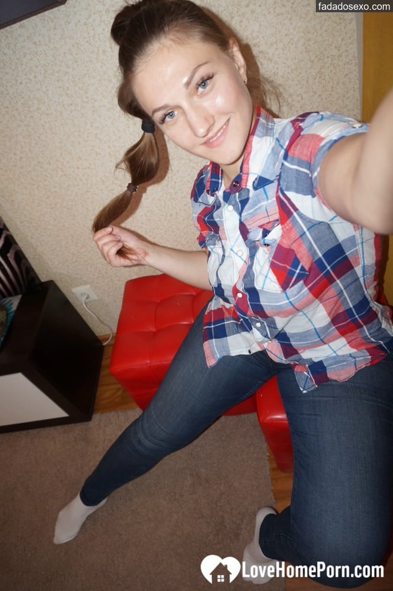Branquinha amadora natural e linda exibe o corpão em 17 fotos caseiras: bunda grande empinada, peitinhos pequenos naturais e bucetinha lisinha. Solteira, safada e sem vergonha, ela se arreganha na cama e pela casa toda, abrindo tudo nas selfies mais quentes e reais que você vai ver.