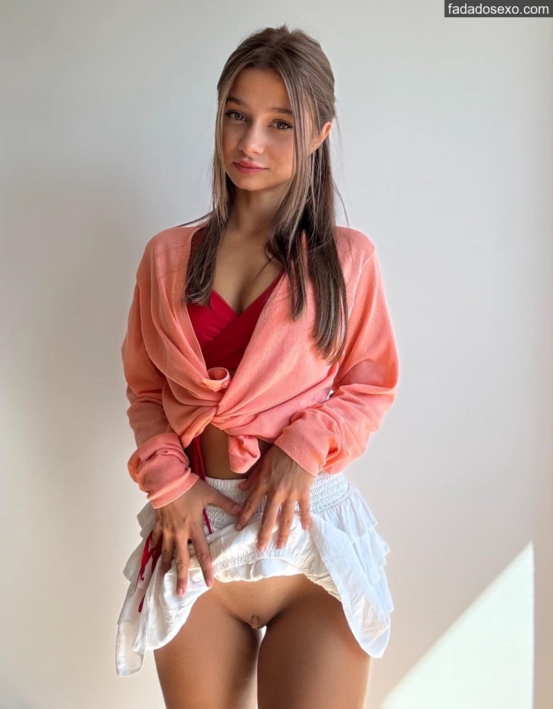 O corpinho delicado dela é um convite ao pecado: bundinha redondinha, cintura fina e poses de quatro, de lado e de pernas bem abertas. O que acha desse corpo perfeito de ninfeta caseira?